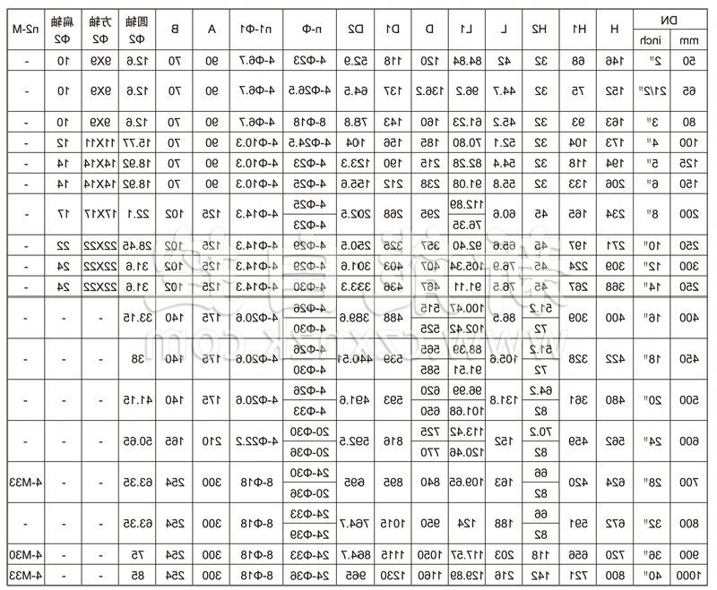 主要尺寸表: