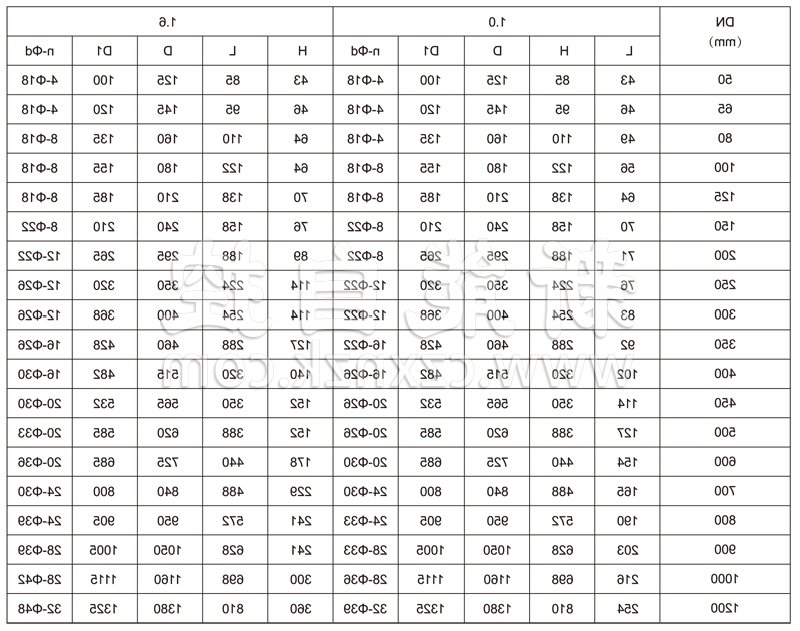主要尺寸表